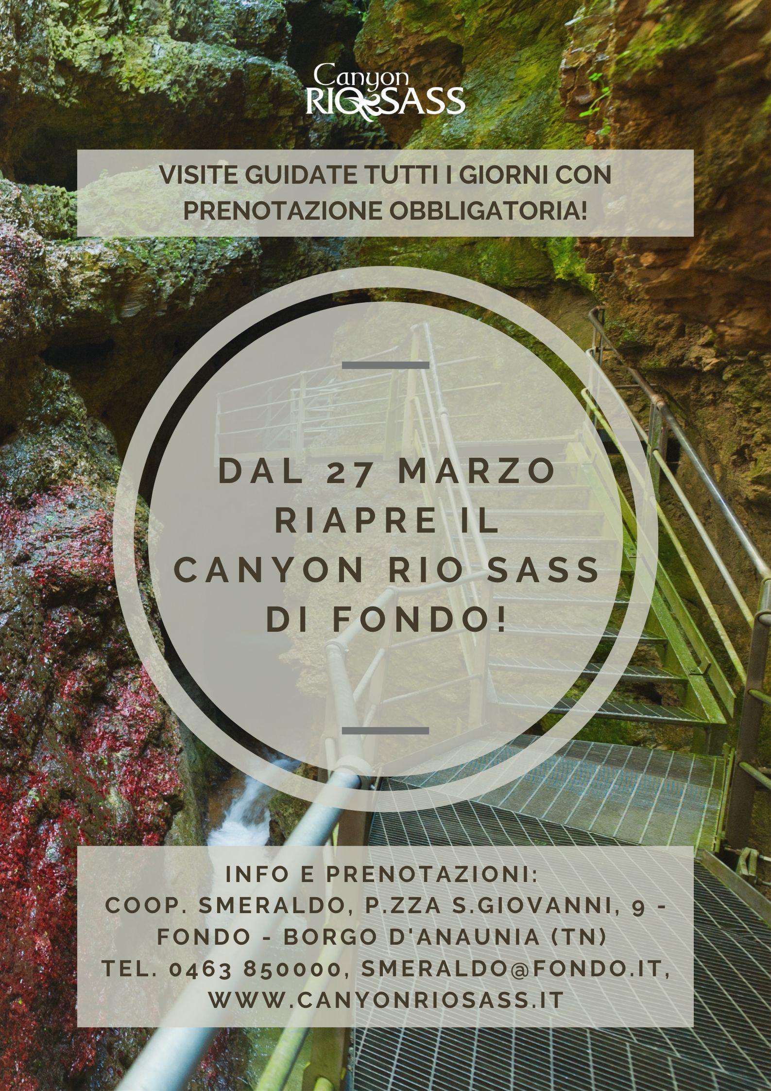 Da venerdì 27 marzo 2026 riprendono le escursioni nel Canyon Rio Sass di Fondo.